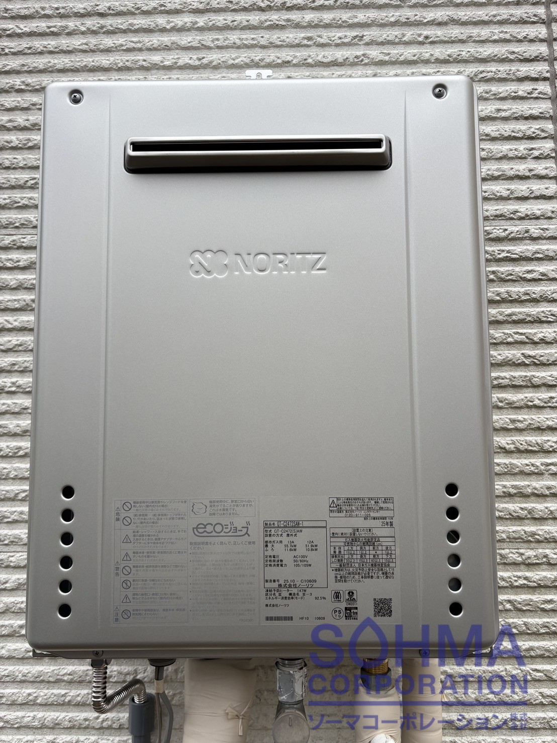 東京ガスふろ給湯器ノーリツGT-2450SAWX → ノーリツエコジョーズガスふろ給湯器GT-C2472SAW-1 13A |